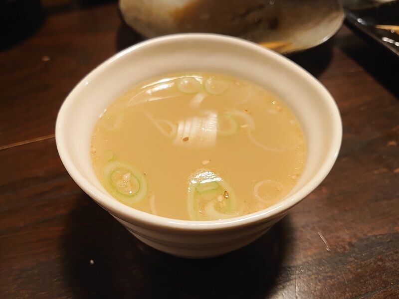 コースの焼き鳥がひととおり出尽くしたら、最後は焼きおにぎりと鶏スープ、そしてお新香。