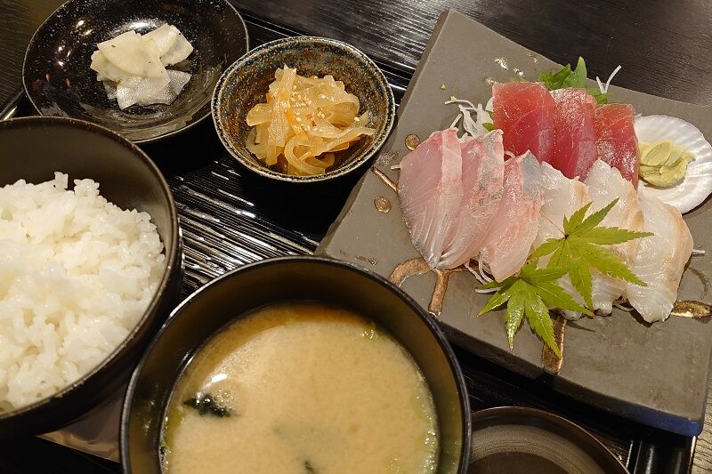 どうしてもそのなんとかが思い出せないんだけど、どれも好みのものだったからアジ丼をやめて刺身定食(1100円)をお願いしちゃいました♪