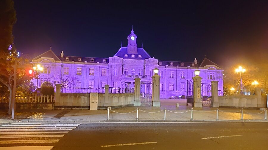 女性に対するDVをなくす運動に合わせて、パープルにライトアップされてました!
