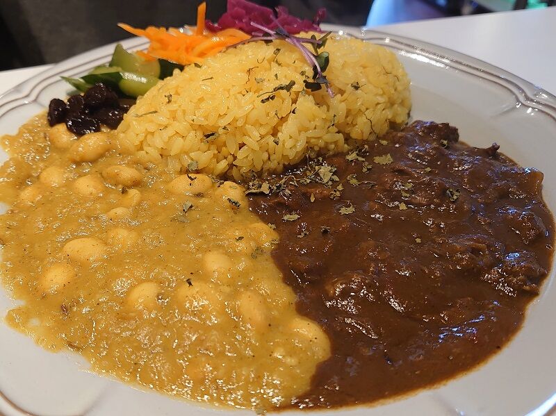 こちらは、奥さんが頼んだ山形牛のビーフカレーとダール豆のカレー2種。