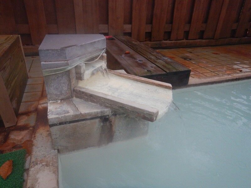 白く強い濁りと細かい湯の華のせいか、底は全く見えません。