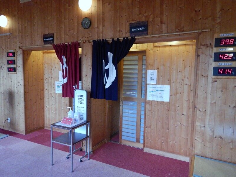大浴場の入り口には湯温の表示板が設置されています。