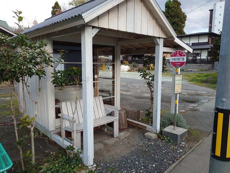 これ、本当は待合所じゃなくてバス停の奥にある会社が造った立体看板らしいのですが、せっかくだったら・・・ と、こんな遊び心満載のモノにしたんだとか。