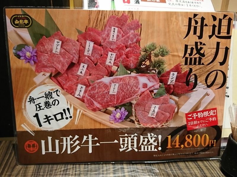 卓上にメニューと一緒に置いてあった「山形牛一頭盛」。