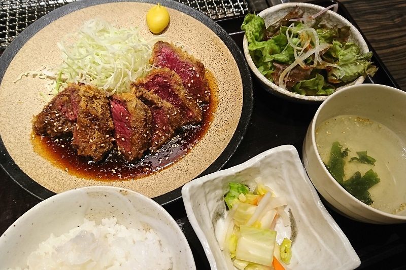 赤身肉がいかにも美味しそうな、山牛さんの牛カツ定食ψ(`∇´)ψ