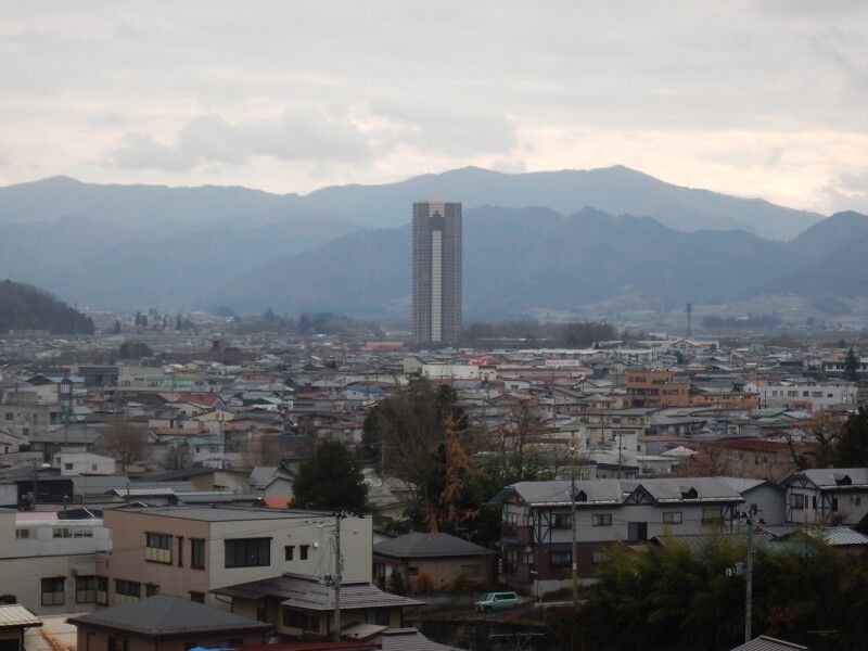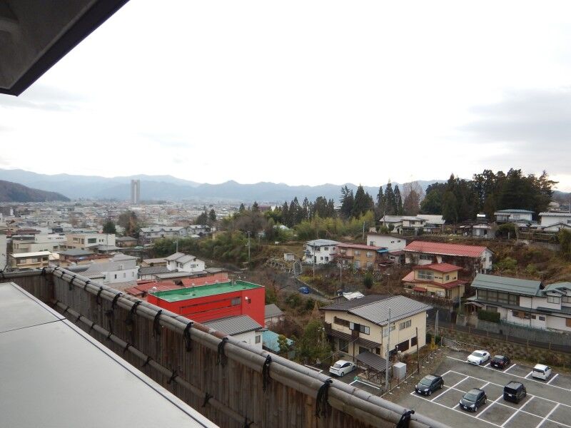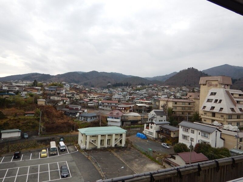 休憩がてら立ち上がると、かみのやま温泉街が一望できます。