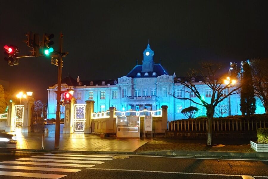 何やら青ざめ…いや、青くライトアップされてたけど、今は何のテーマで青になってるんだろう?