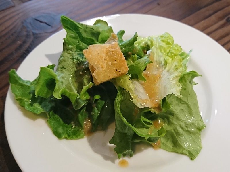 ピッツァ登場前のサラダと、ピッツァ登場後のコーヒー。
