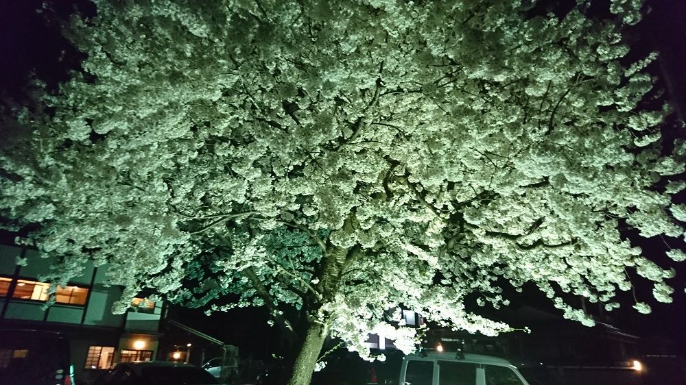 きょうの帰りに揚妻さんの前を通ったら、駐車場の桜がこんなに見ごろになってました♪