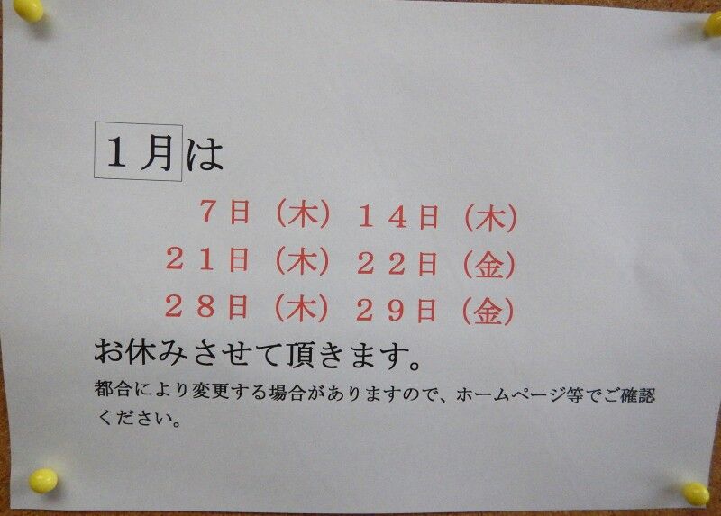 1月は基本的に木・金曜日がお休み。