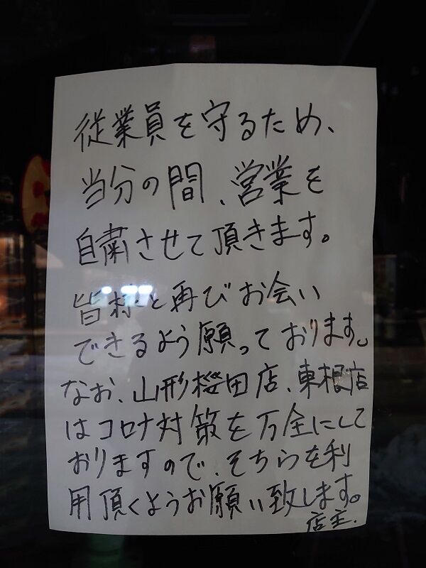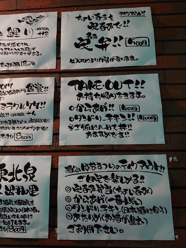 こちらはもうちょっと前の写真なんだけど、本町(元の雲雀野さんだったところ)のからあげ居酒屋 MARUCHOさん。こちらもお邪魔したことなくって、どんな感じか覗いてみようと思ったらこんな貼り紙が。