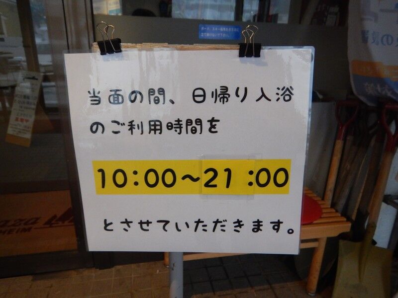 入口に営業時間のご案内。
