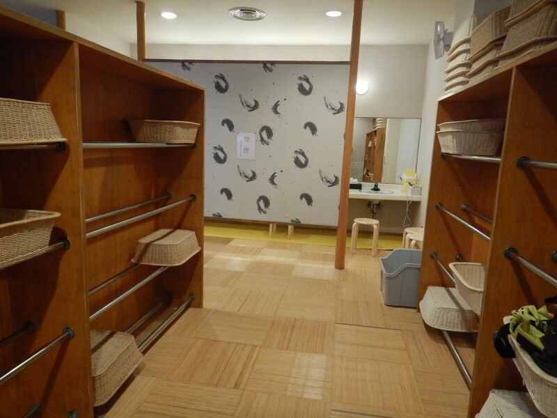 脱衣所は十分な広さがありますが、コロナ対策のためか籠が少なめ。