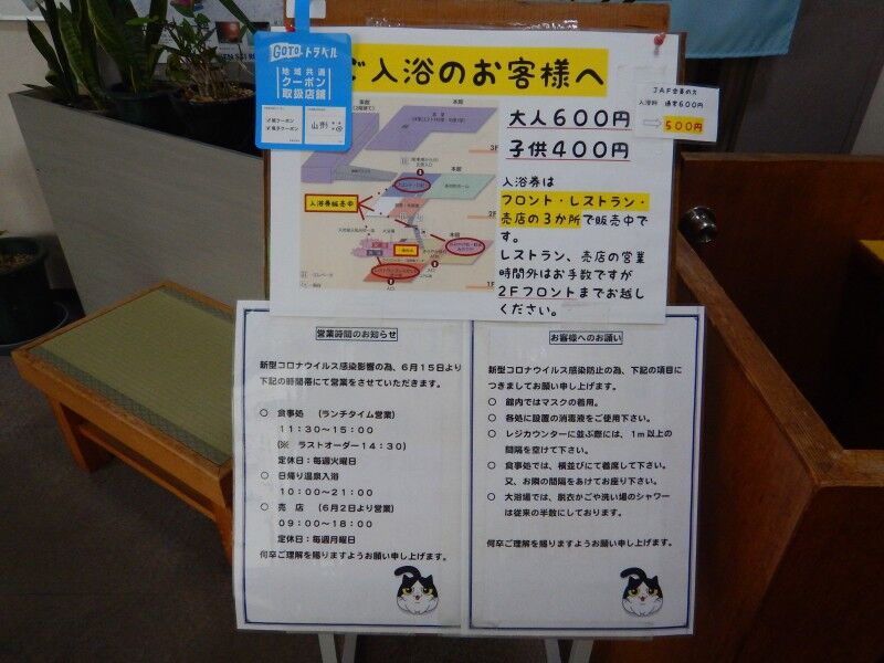 入浴券は2階のフロントのほか、1階の売店やレストランでも購入できます。