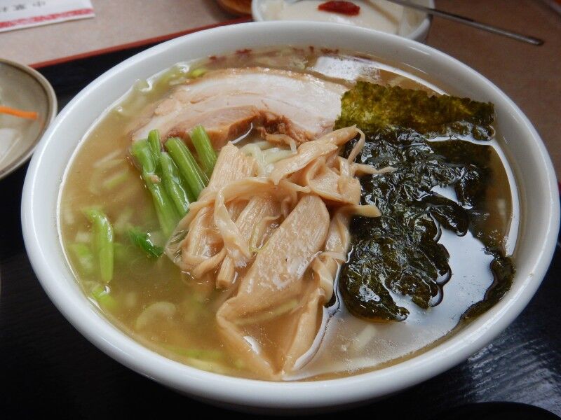 プリッとした縮れ麺に、塩味薄めのスープが組み合わせてあります。