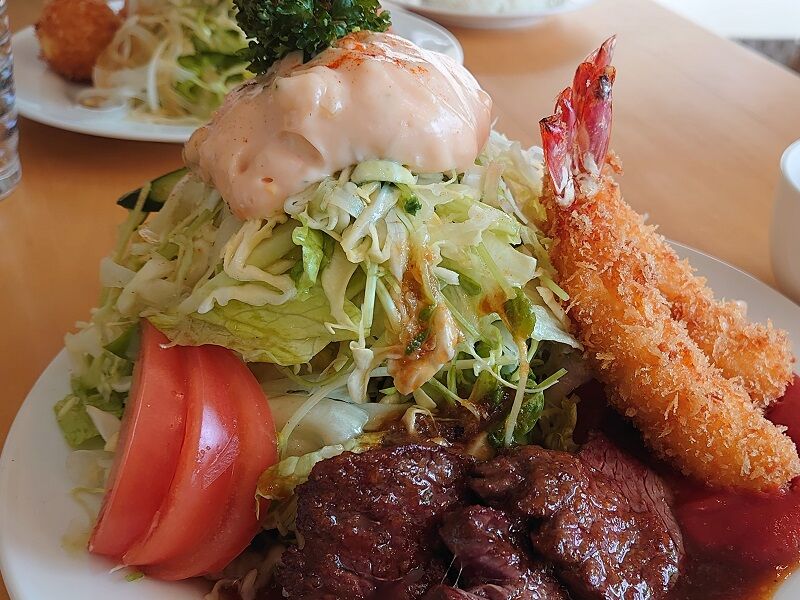 カニクリームコロッケも魅力的だったんだけど、それだったらアニバーサリーのメニューでいいんじゃない?という思いもちらりと浮かび・・・ ハンバーグとステーキもちょっと肉肉しい。