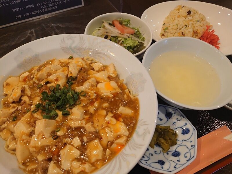マーボーあんかけ焼きそばと、半親子丼は半チャーハンに替えてもらいました。