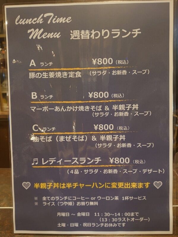 今週のランチは、生姜焼きと、麻婆焼きそばに半親子丼、それか油そばに半親子丼。