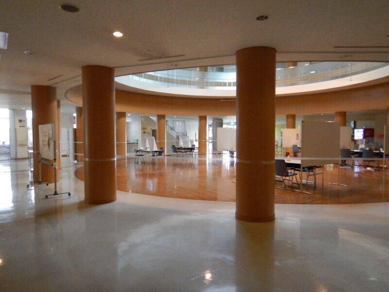 中央には大きなホールもありますが、感染防止のため何も無ければ立ち入り禁止中。