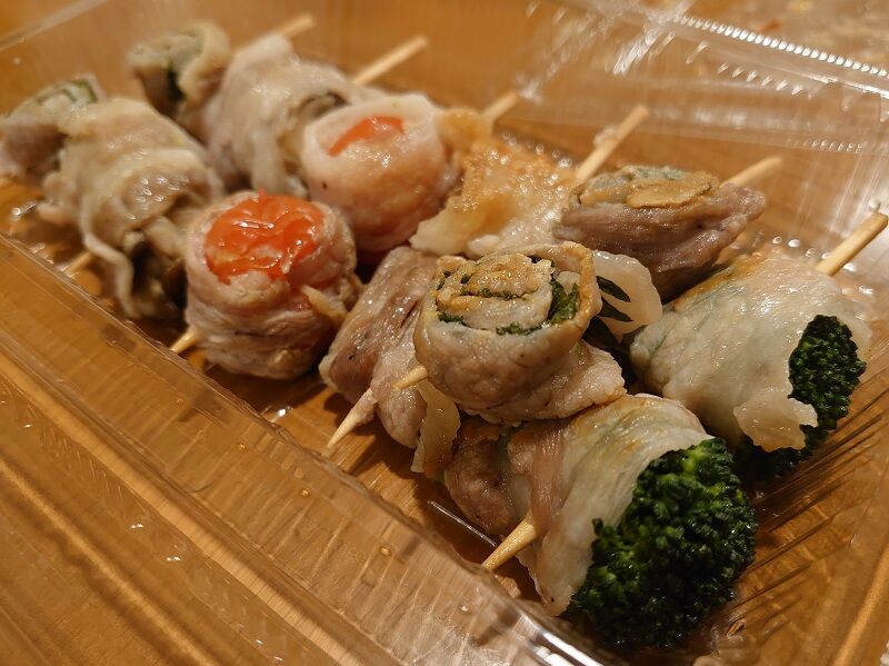 これ、いつもせいろ蒸しに入れてるものを串焼き風にアレンジしてくれたんだね♪