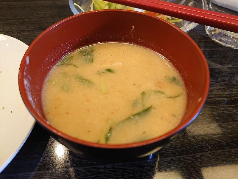 ランチのセットメニューの場合は、最初のサラダとお味噌汁、それにドリンクがついてきます。