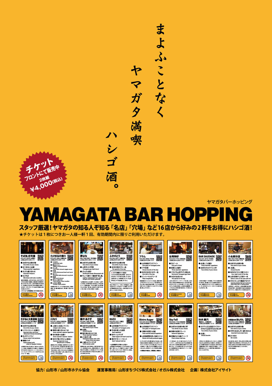 もとのWEBサイトでこの記事を読む→YAMAGATA BAR HOPPING、今月いっぱいですよ!