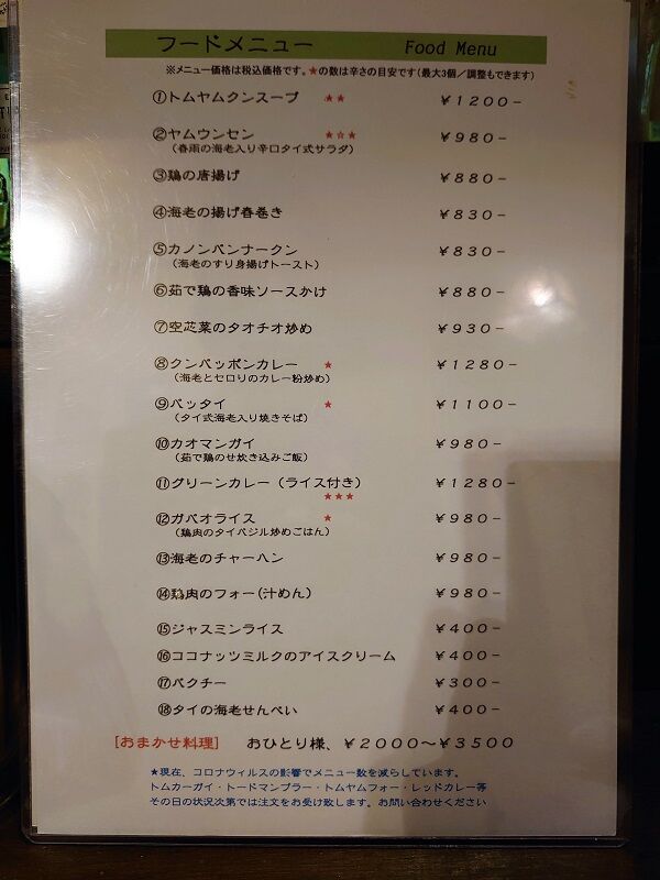 実は・・・ これからも世間一般にはなかなかみんなで飲むなんてことはできないだろうし、おひとり様で飲む人の参考にしてもらうためにもしばらくは「晩酌セット」のお店を回ってみようかと思ってたんだけど、やっぱりトムヤムクンの誘惑には勝てなかった(^^;
