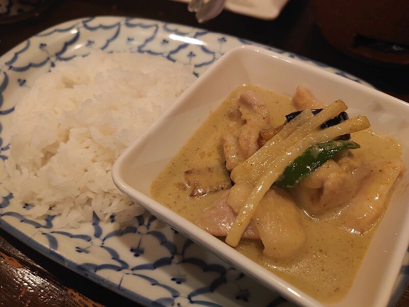 あ、途中で昨日アップしてたチャーンに切り替えて飲んでたけど、ちょっとスパイシーというかハーブを感じるような独特のチャーンビールと、ココナッツ風味のグリーンカレー。