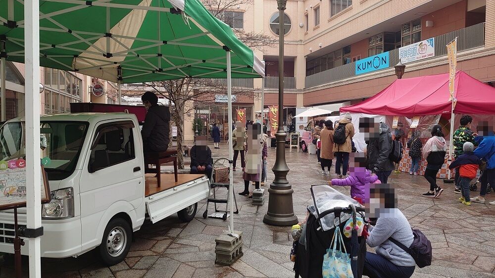ほっとなる広場では軽トラの荷台に設置されたストリートピアノや、いくつかのキッチンカーが登場し、ご覧のとおり家族連れでにぎわってました♪