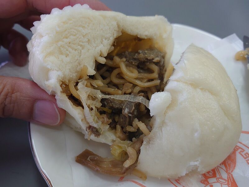 これがその馬肉ラーメン肉まんの内部。つまり馬肉とラーメンですψ(`∇´)ψ