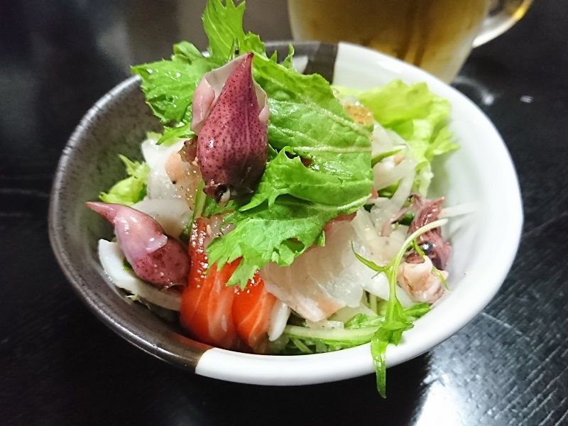 こちらは、お通しからしてホタルイカとサーモンのお刺身が美味しそうな、魚料理が美味しいってイメージのお気に入り店。