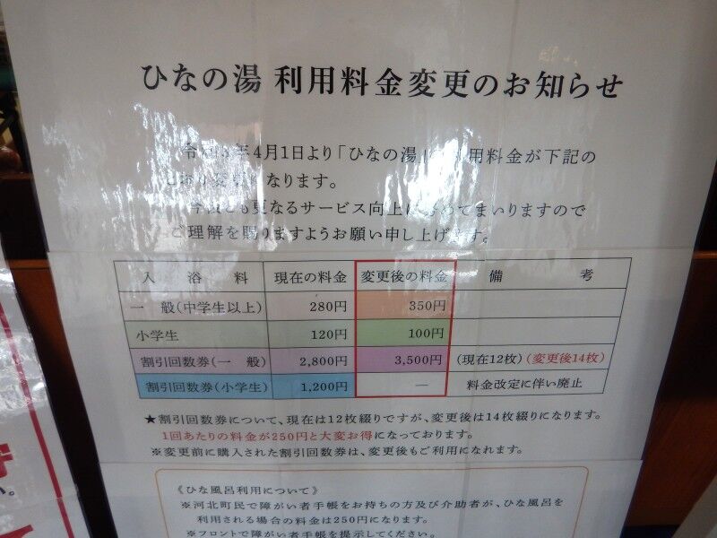 今までは県内でも安価な料金でしたが、他の公衆浴場と同程度になっていました。