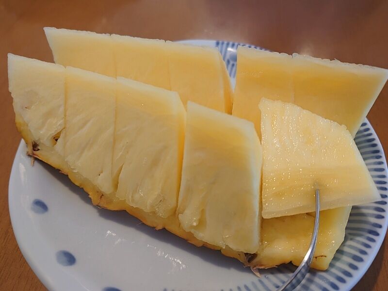きのう買ってきてた台湾パイナップル。芯まで甘くて食べられる、っていう売りは本当です♪ちょっと固めなのは否めないけど、普通に甘くて全く問題なし!