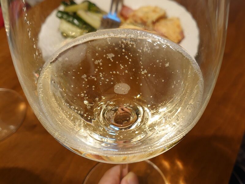 さて。あらためてラベルをよく見てみると、このレ・ヴァカンツェ、裏の品名には「スパークリングワイン」って書いてある。お店のオーナーさんからも、コルク栓の形状からはわからないけど、実は微発泡のワインなんです、って教えてもらってたんだよね。