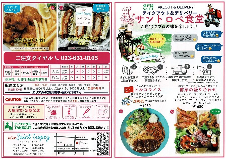 ランチでよく利用していたニュー・サントロペさん、なんと「サントロペ食堂」という名前でテイクアウト&デリバリーも積極的に行っているようでした!