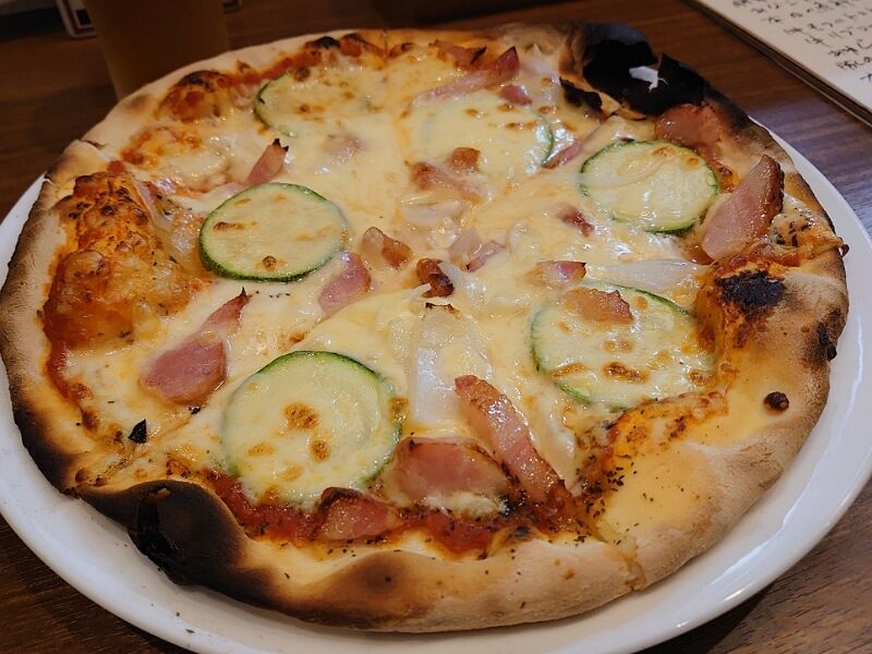 耳のところが膨らんでいてパン生地タイプに見えるけど、実際にはけっこう薄手のクリスピータイプのピッツァです。