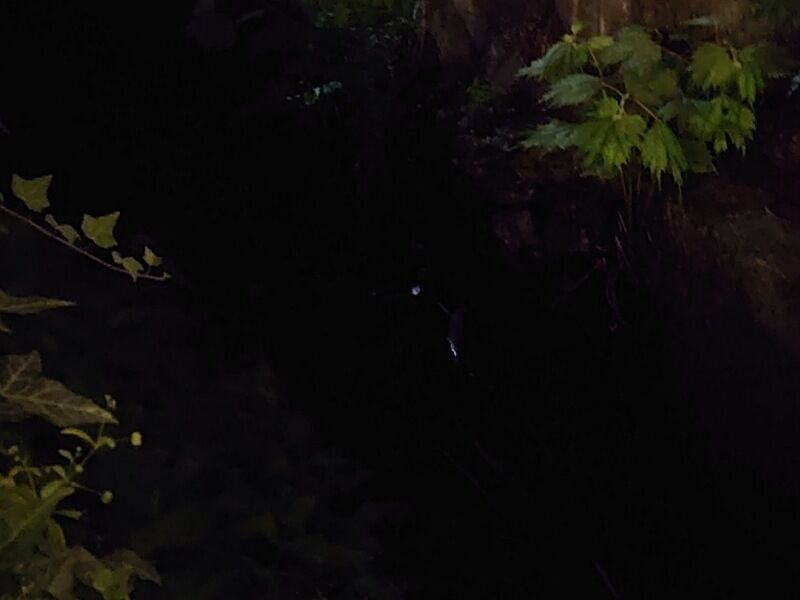 真っ暗だけど、御殿堰の流れの中に確かに3箇所ほどの光が見える!