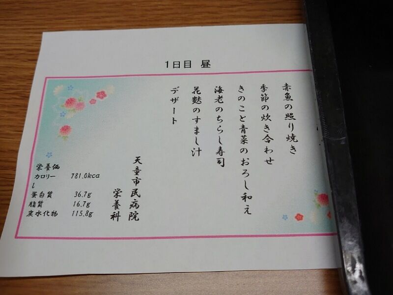 天童市民病院のご飯は献立表つき。