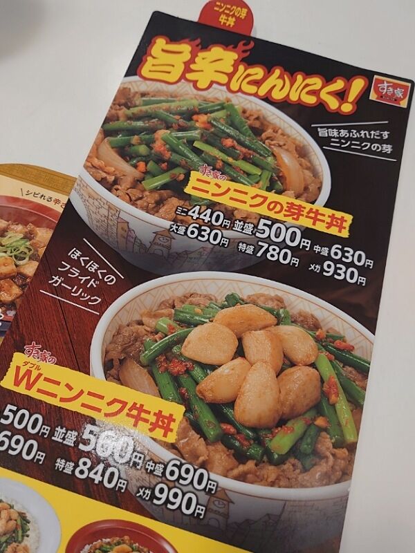 前は名古屋方面で愛されているという、ニンニクチャーハンに憧れてどっかで食べてみたいと探し回っていたんだけど、このWニンニク牛丼っていうのも強烈だな(^^;