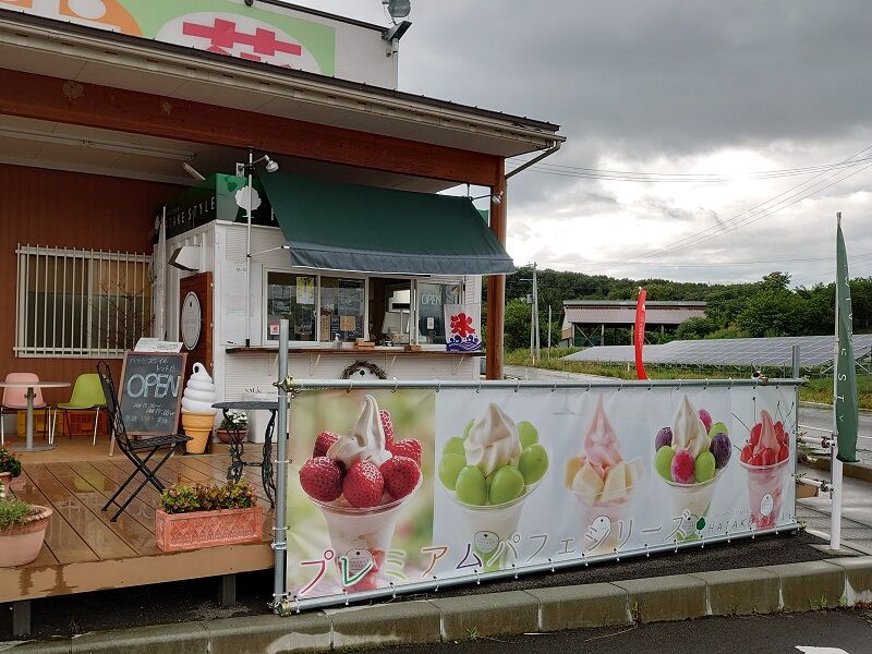 季節のフルーツパフェで見たら、山形駅のS-PALのお店と比べて100円安いっぽい。駐車場は目の前で無料だし、混んでないし、これはいいことばっかりだ!
