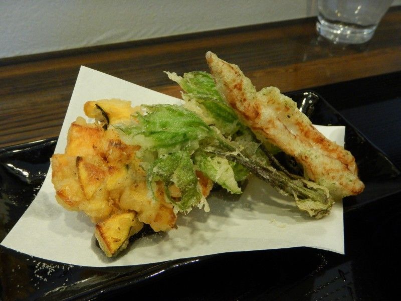 天ぷらはコシアブラに茄子とチクワ、サツマイモとトウモロコシのかき揚げです。
