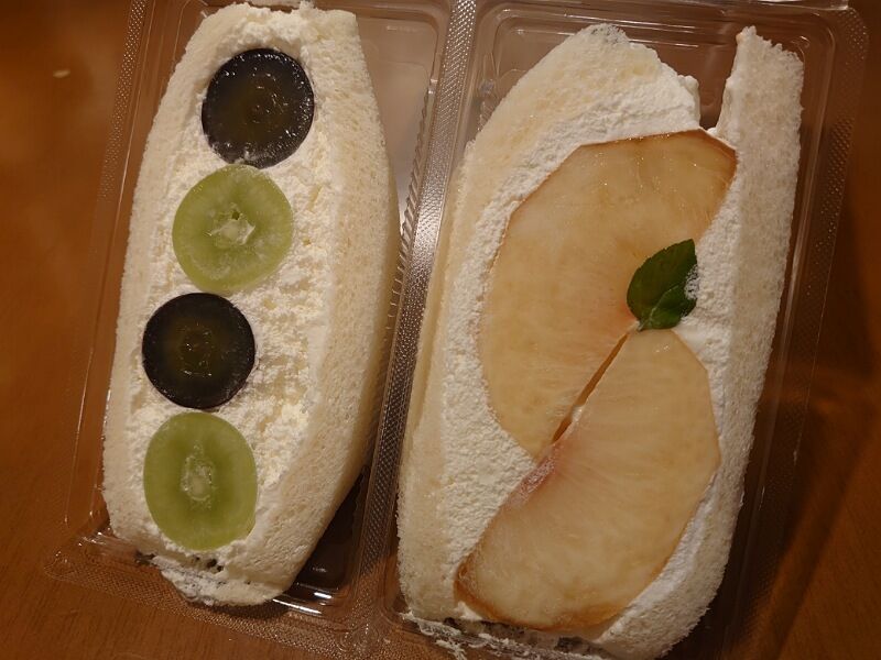 そして、せっかくなのでもうひとつ…と思ったときに、フルーツに混じって「抹茶こしあん」なんてサンドがあったのもメッチャ気になったんだけど、やっぱり今日は季節のフルーツで攻めようとこの2つにしたんだよ。