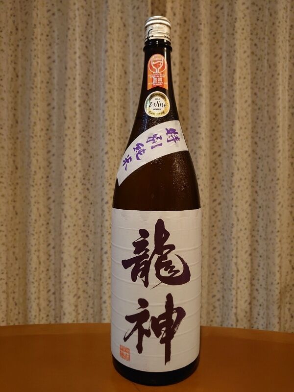 さらに夕方、ワイン3本を持って歩いて帰るのはちと辛かったので、奥さんに迎えを頼んでしまったのですが、そのついでに・・・とまたしても悪いクセが出て、ワインだけでは飽き足らず、もとさかやさんに寄って「龍神」の特別純米酒を買ってきてしまったのでした(^^;