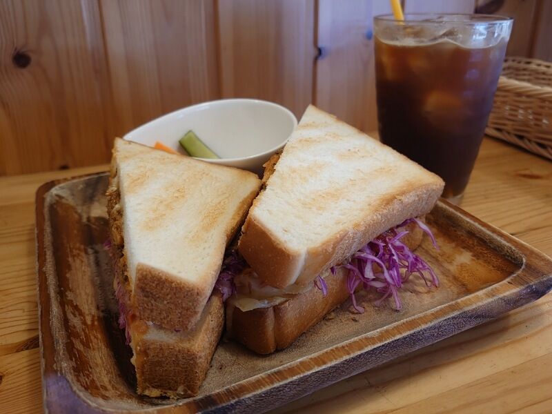 厚切りのトーストを使ったサンドウィッチ。