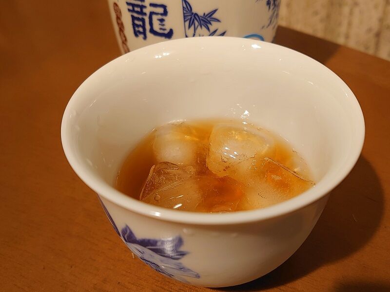 通なお方はそのまま常温で飲むのがいいんだろうけど、紹興酒初心者の僕は、氷を入れてロックにしていただいてみました♪