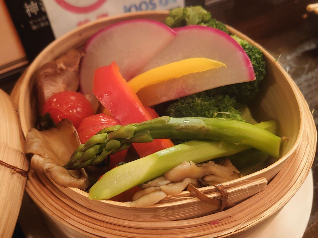 続いては一気に流れを変えて、野菜のせいろ蒸しをいただきました!