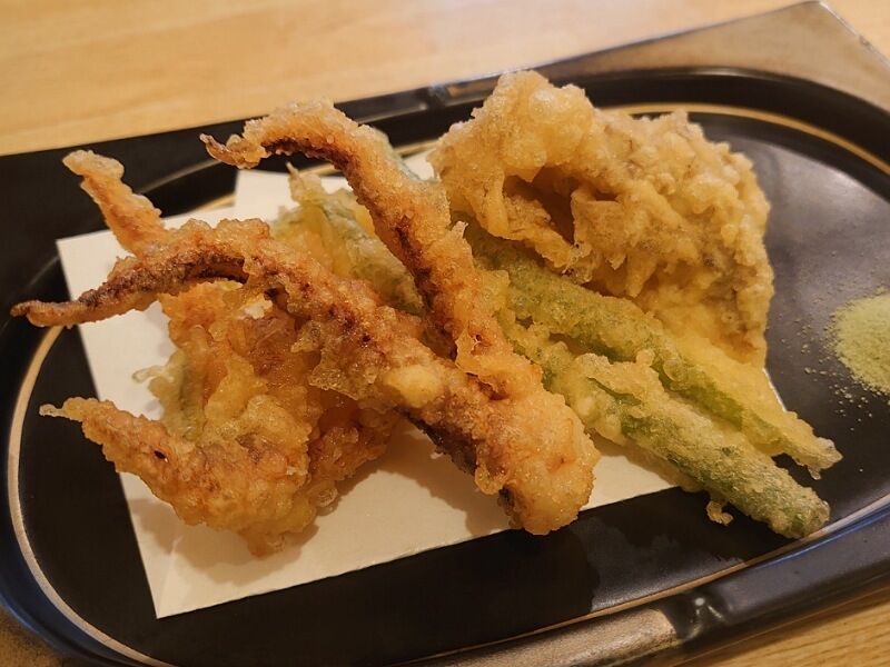 「すみません、実はもうけっこうおなかがいい感じになっちゃって、お蕎麦はなくてもいいかと思ってたんでした。でもこの天ぷらってお蕎麦を頼んだときのものじゃないんですか?」