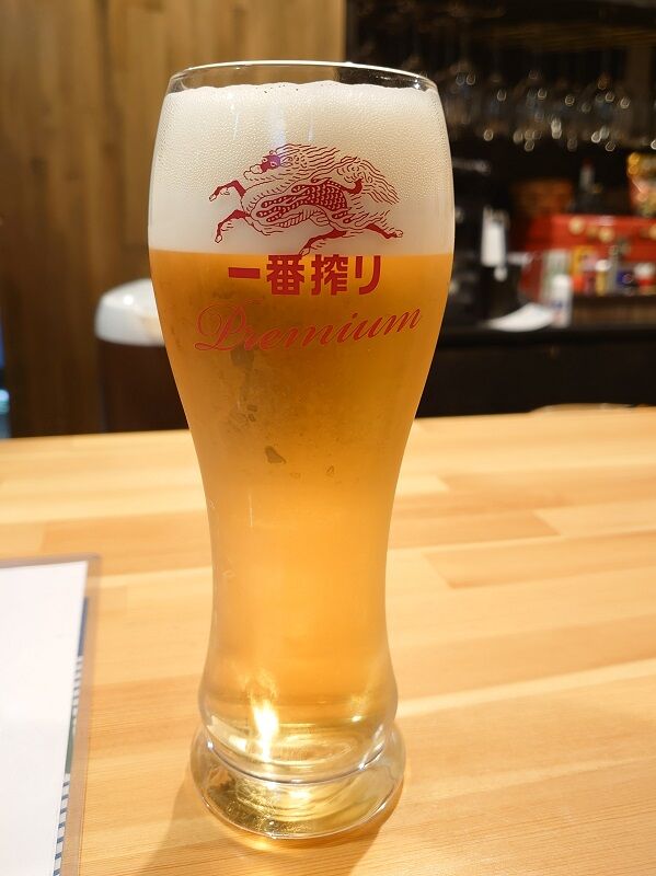まずはやっぱり生ビール。一番搾りが嬉しいね( *´艸`)
