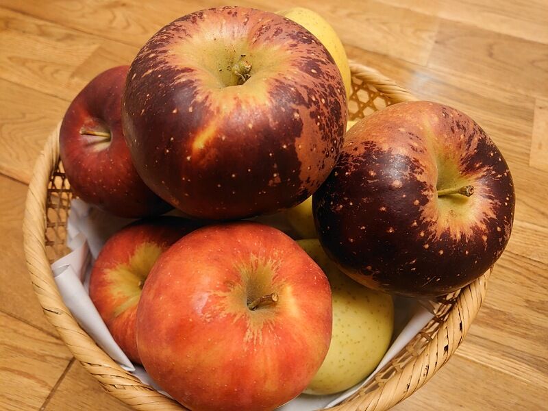 真っ黒いって言っちゃうと言い過ぎだけど、ほかのリンゴに比べて凄く黒々と見えたんだよね。