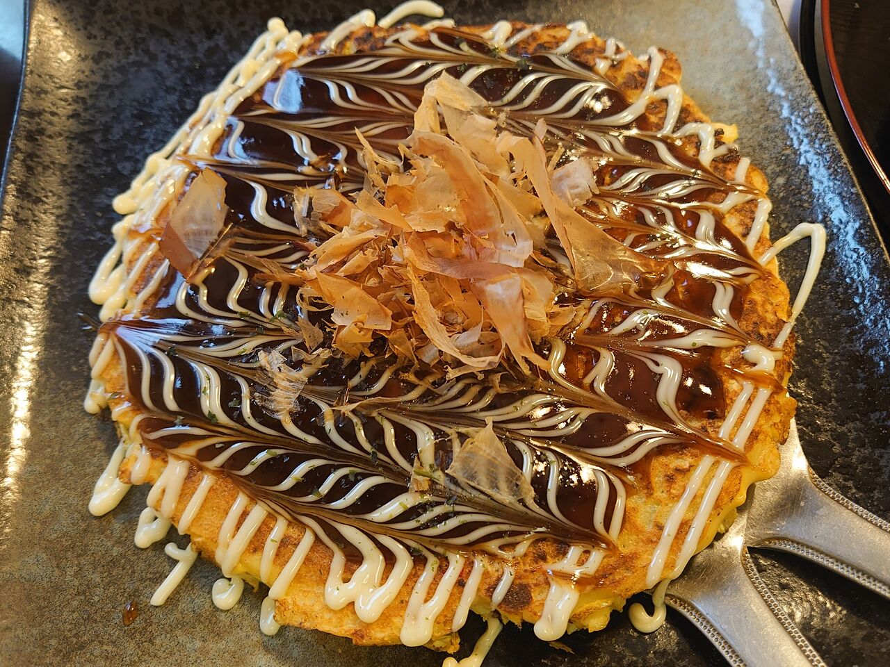 お好み焼きは、実はけっこう迷ったんだけど、僕はお店の名前がついた「ふうふう」焼きにしてみました。